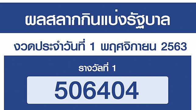 ตรวจหวย สลากก นแบ งร ฐบาล 1 พฤศจ กายน 2563 รางว ลท 1 ค อ 506404